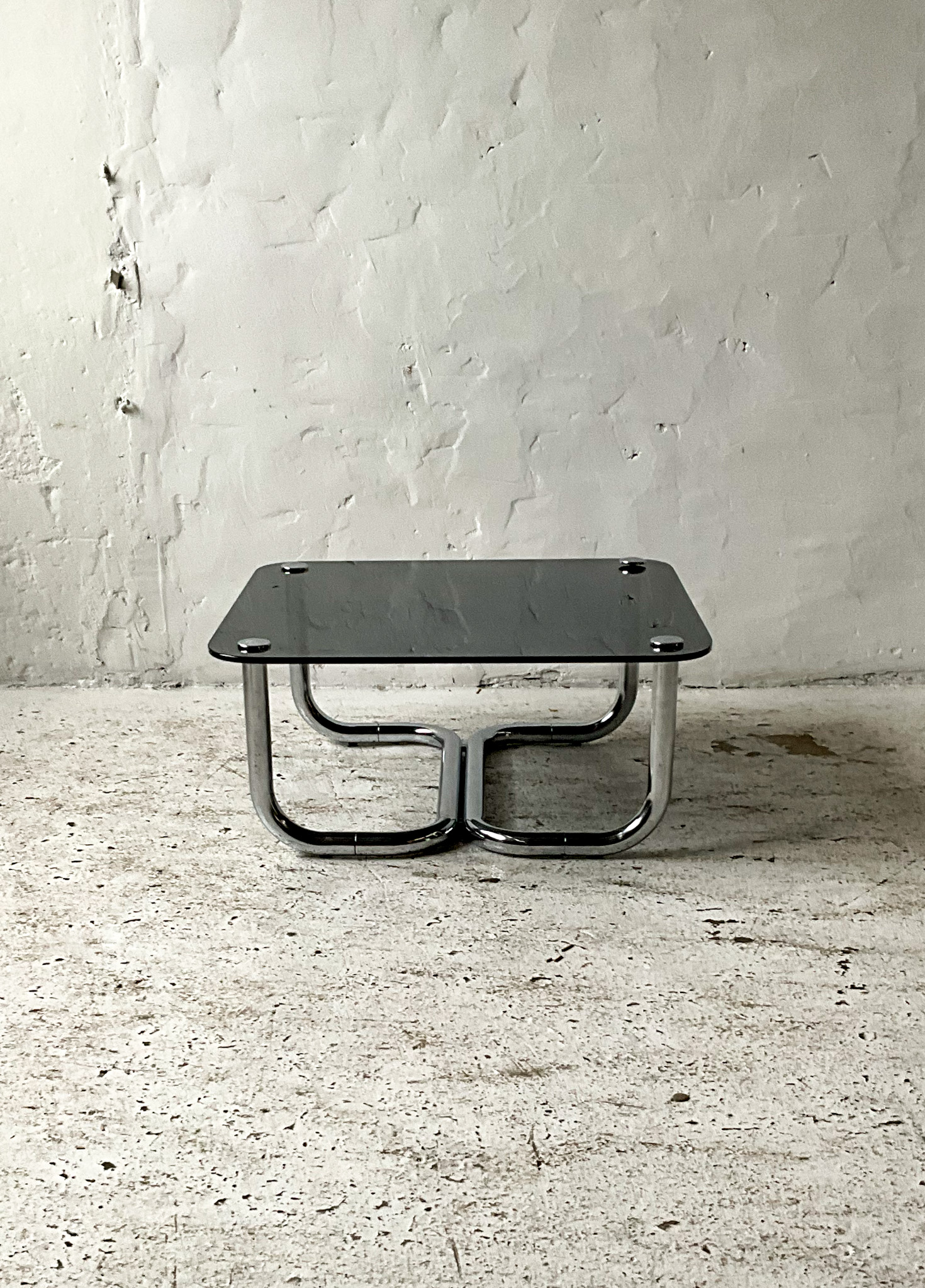 Brutalistyczny stolik aluminium szkło lata 60 70