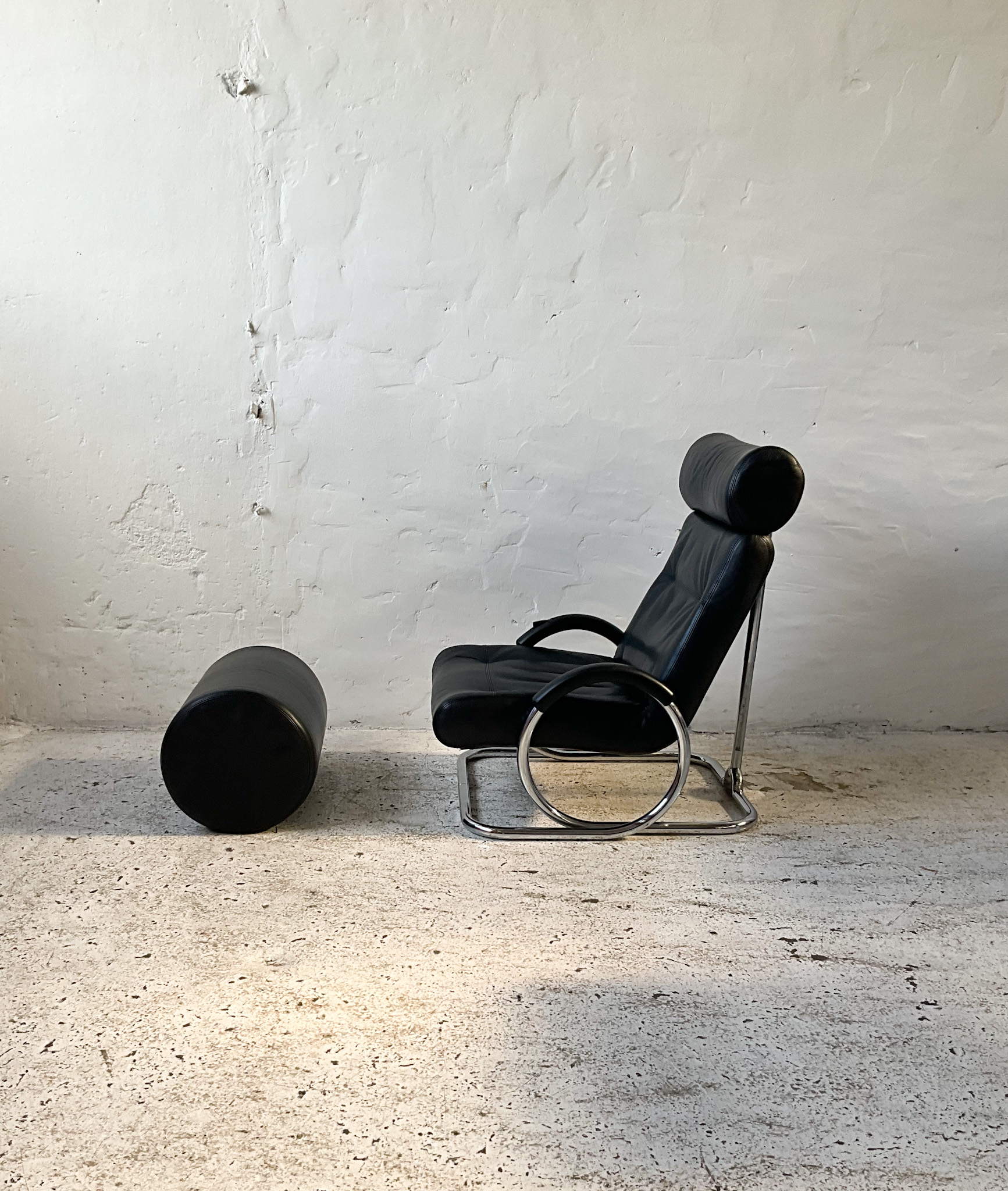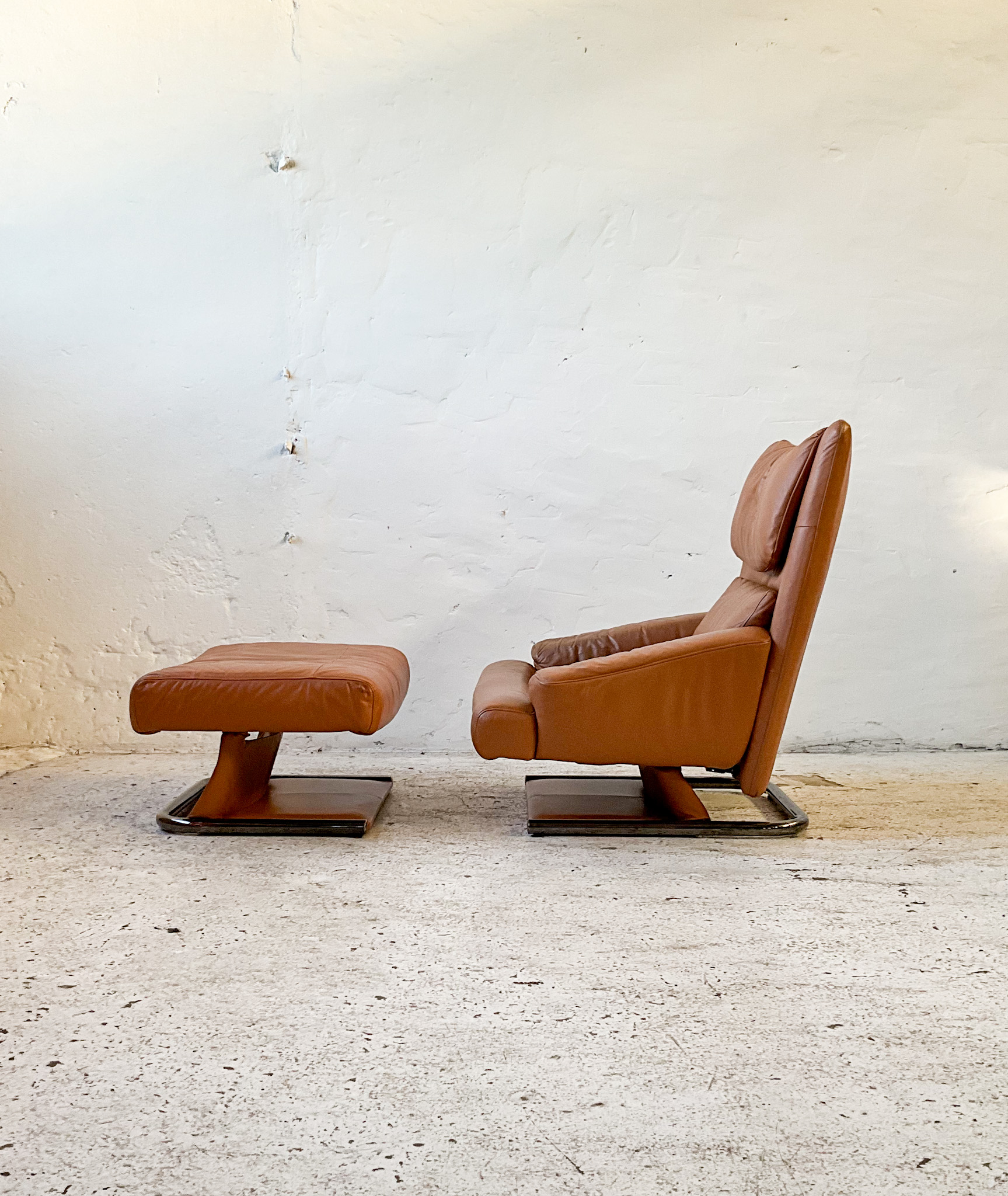 Rolf Benz fotel z podnóżkiem z serii 6500 skóra lata 80 vintage design