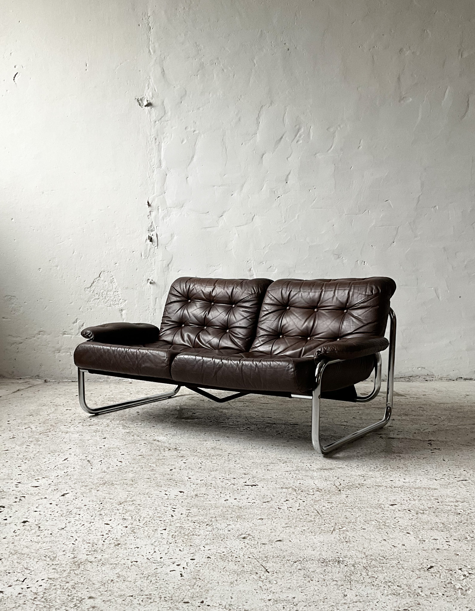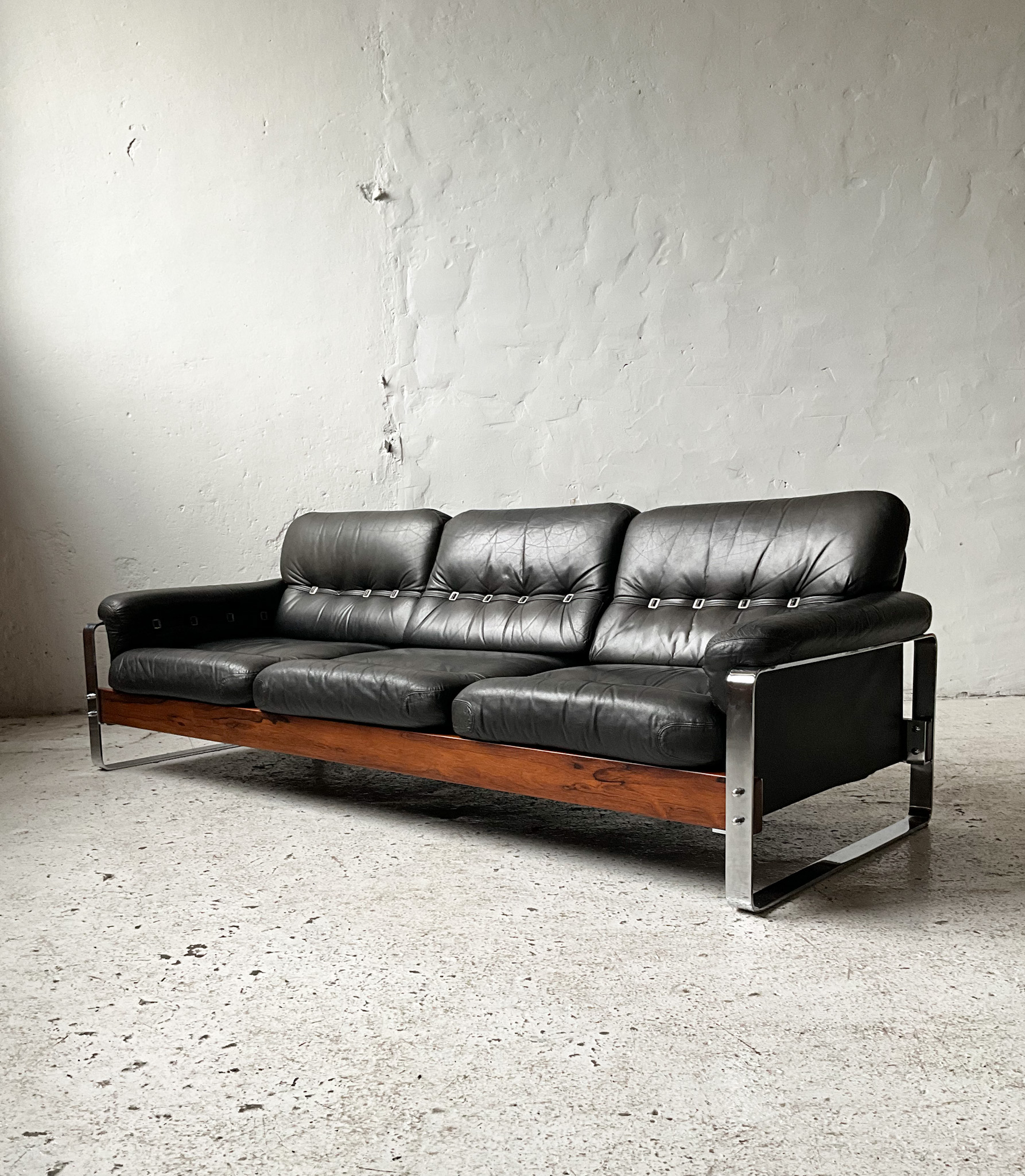 Sofa mid century skóra palisander chrom lata 60 70 vintage