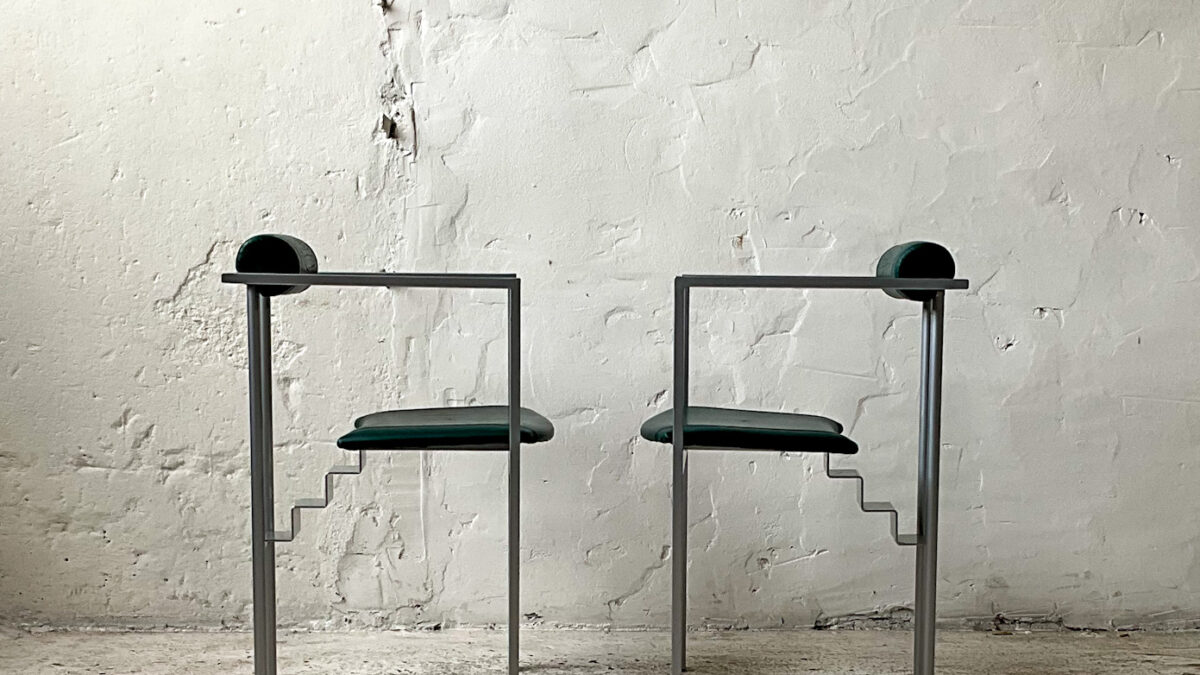 Krzesła z lat 80-tych wyprodukowane przez niemiecką firmę Froscher. Krzesła są wygodne, bardzo dobrze wykonane z dbałością o detal. Jest to projekt nawiązujący do estetyki memphis style, bardzo atrakcyjny wizualnie. Stan zachowania jest dobry ze śladami użytkowania właściwymi dla wieku tych krzeseł.