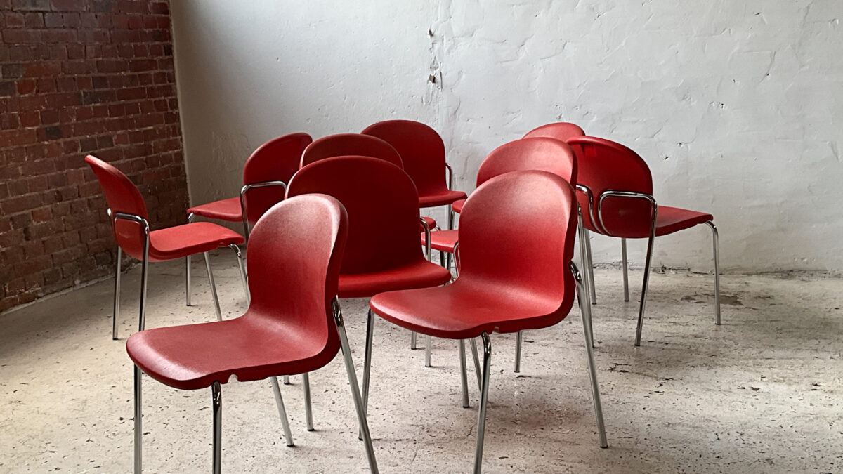 Krzesła sztaplowane z lat 70-tych z tworzywa sztucznego, wyprodukowane przez niemiecką firmę Wilkhahn. Krzesła są bardzo wygodne, ergonomiczne, dobrze wykonane. Dzięki opcji sztaplowania łatwo te krzesła przechowywać. Stan zachowania krzeseł jest dobry ze śladami użytkowania właściwymi dla wieku tych mebli. Posiadamy większą ilość tych krzeseł.