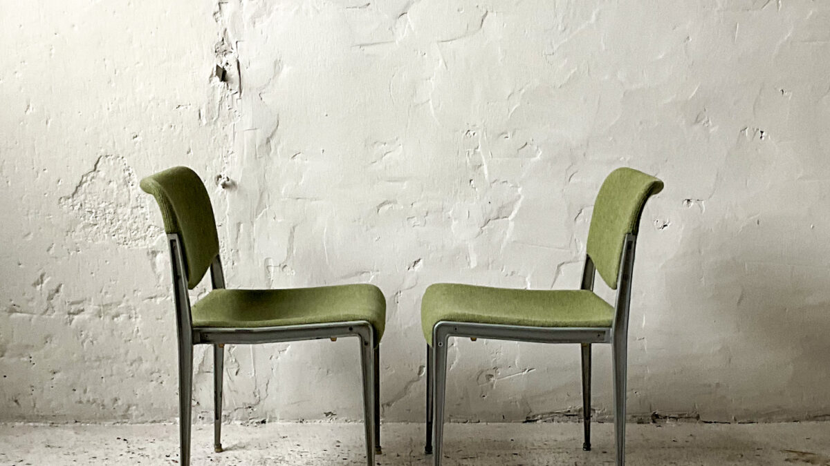 Krzesła z serii 2500 zaprojektowane w latach 70-tych przez prof. Hansa Ell dla niemieckiej firmy Kusch & Co. Krzesła mają aluminiową konstrukcję, siedziska z tworzywa sztucznego pokrytego pianką poliuretanową, obicie wełniane. Krzesła są bardzo ergonomiczne, wygodne i wykonane z dużą dbałością o jakość. Krzesła są w stanie dobrym z lekką patyną na konstrukcji i śladami użytkowania właściwymi dla ich wieku.
