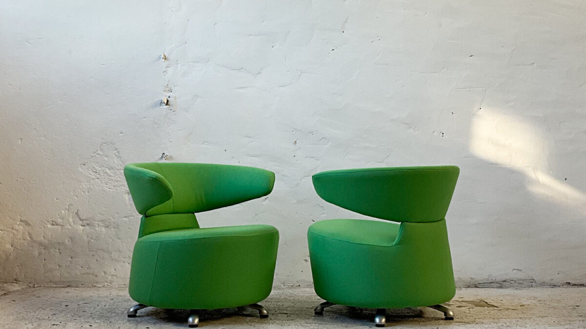 Fotele klubowe Biki zaprojektowane zostały w latach 2000 przez Toshiyuki Kita dla włoskiej marki Cassina. Jest to jeden z projektów należących do linii Aki-Biki-Canta. Fotele są kompaktowe, wygodne i ergonomiczne na co wpływ ma też funkcja obracania. Konstrukcja jest lekka dzięki połączeniu aluminiowej ramy i pianki poliuretanowej. Obicie foteli można w prosty sposób zdejmować co ułatwia ich pielęgnację. Stan zachowania foteli jest bardzo dobry ze śladami użytkowania właściwymi dla ich wieku (obicie prezentowanych foteli zostało wymienione na wysokiej jakości wełniany materiał). Posiadamy inne fotele z tego modelu w różnych obiciach.