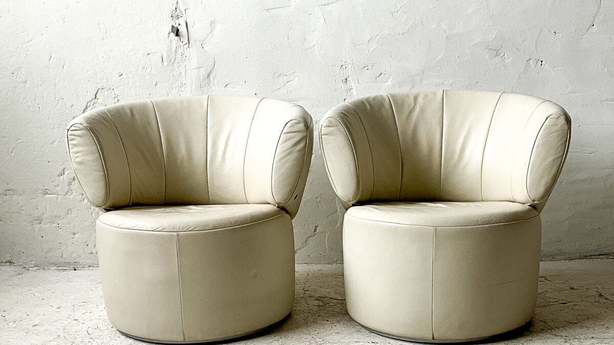 Fotele obrotowe model 684 wyprodukowane przez niemiecką markę Rolf Benz. Fotele są bardzo wygodne, dobrze wykonane z wysokiej jakości materiałów. Stan zachowania foteli jest dobry ze śladami używania właściwymi dla ich wieku (na podłokietnikach wytarcia, miejscowo na siedziskach przebarwienia).