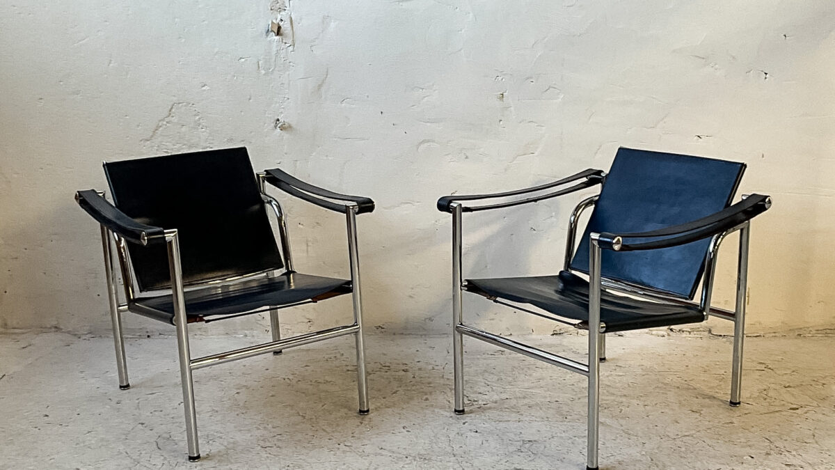 Fotele z lat 80/90 wg projektu LC1 Le Corbusier z lat 20-tych. Fotele są bardzo atrakcyjne wizualnie a przy tym dobrze wykonane z dobrej jakości materiałów. Stan zachowania jest dobry ze śladami użytkowania właściwymi dla wieku tych mebli. Jest to dobrej jakości projekt inspirowany.