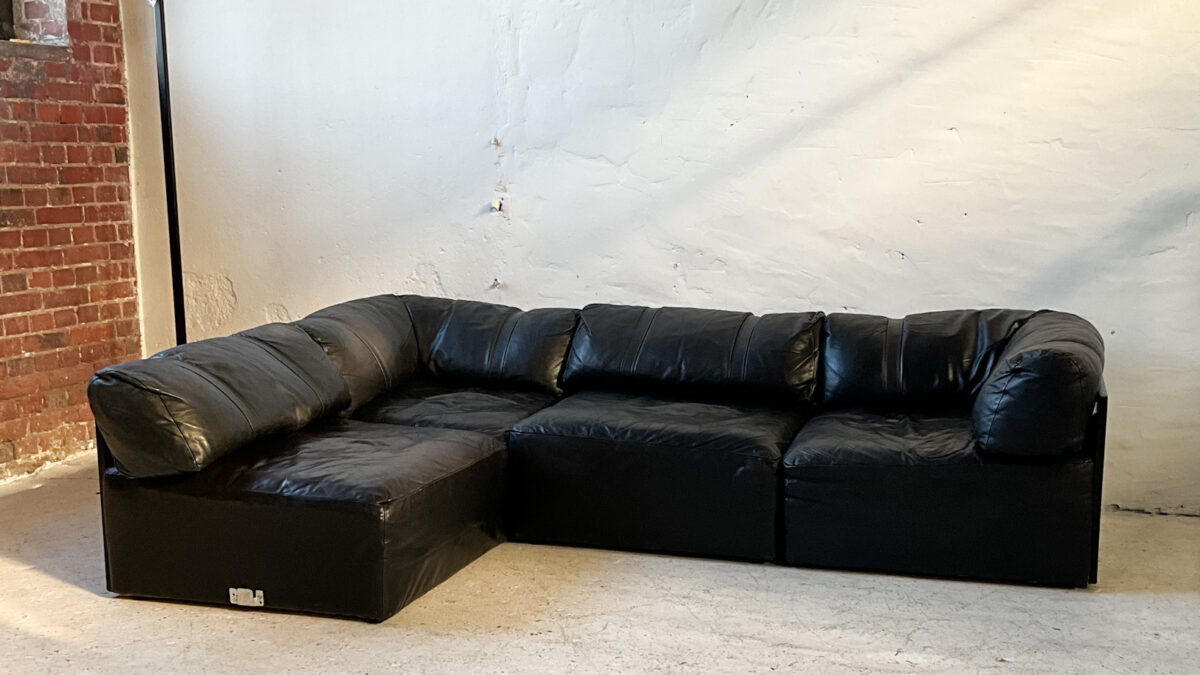 Sofa modułowa z lat 70-tych. Sofa jest atrakcyjna wizualnie, bardzo wygodna, świetnie wykonana z wysokiej jakości materiałów. Stan zachowania sofy jest dobry ze śladami używania właściwymi dla jej wieku.