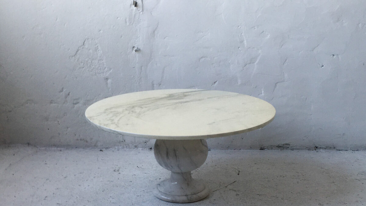 Stolik marmurowy z lat 70/80-tych. Interesująca forma, dobre wykonanie. Stan zachowania dobry ze śladami użytkowania właściwymi dla wieku tego mebla. Stolik jest dość masywny.