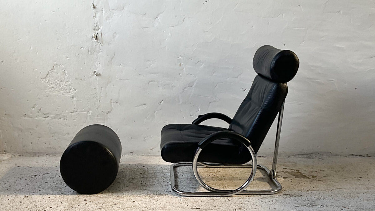 Fotel Flux to projekt niemieckiej marki FSM (część grupy De Sede). Fotel jest bardzo komfortowy, świetnie wykonany z wysokiej jakości materiałów. Funkcja relax pozwala na rozłożenie fotela aż do pozycji leżanki. Stan zachowania jest dobry ze śladami używania właściwymi dla wieku fotela.