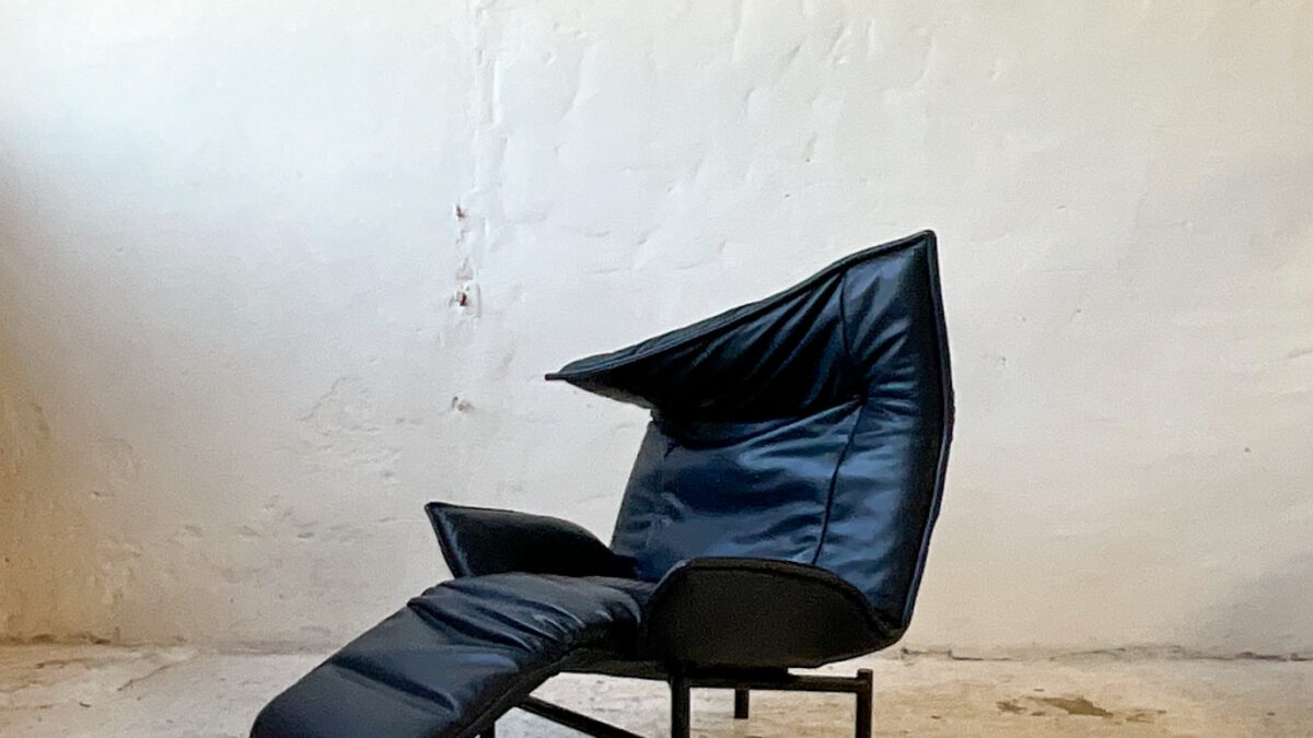 Fotel Veranda to ikoniczny projekt z lat 80-tych Vico Magistretti dla włoskiej Cassiny. Fotel jest bardzo wygodny dzięki możliwości rozłożenia oparcia oraz opcji wysuwania podnóżka. Stan fotela jest dobry ze śladami użytkowania właściwymi dla wieku tego mebla (na skórze siedziska jest widoczna niewielka niedoskonałość).