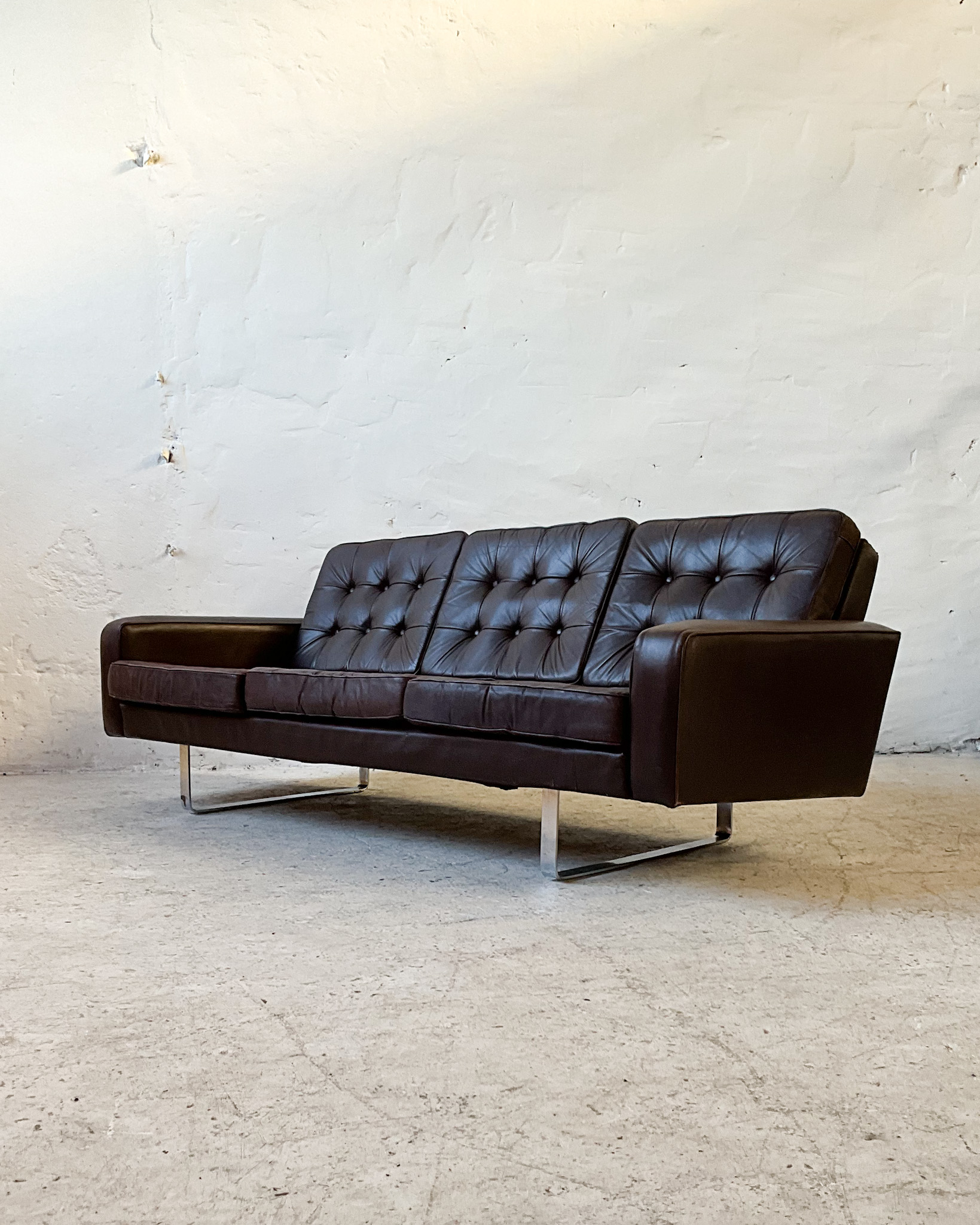 Sofa Tilbury zaprojektowana została w 1976r. przez Mario Belliniego dla włoskiej marki Cassina. Sofa jest bardzo wygodna, świetnie zaprojektowana i wykonana. Jest to rzadko spotykany na rynku projekt. Stan zachowania jest dobry, na obiciu zauważyć można wypłowienia i drobne uszkodzenia tkaniny (widoczne na zdjęciach).