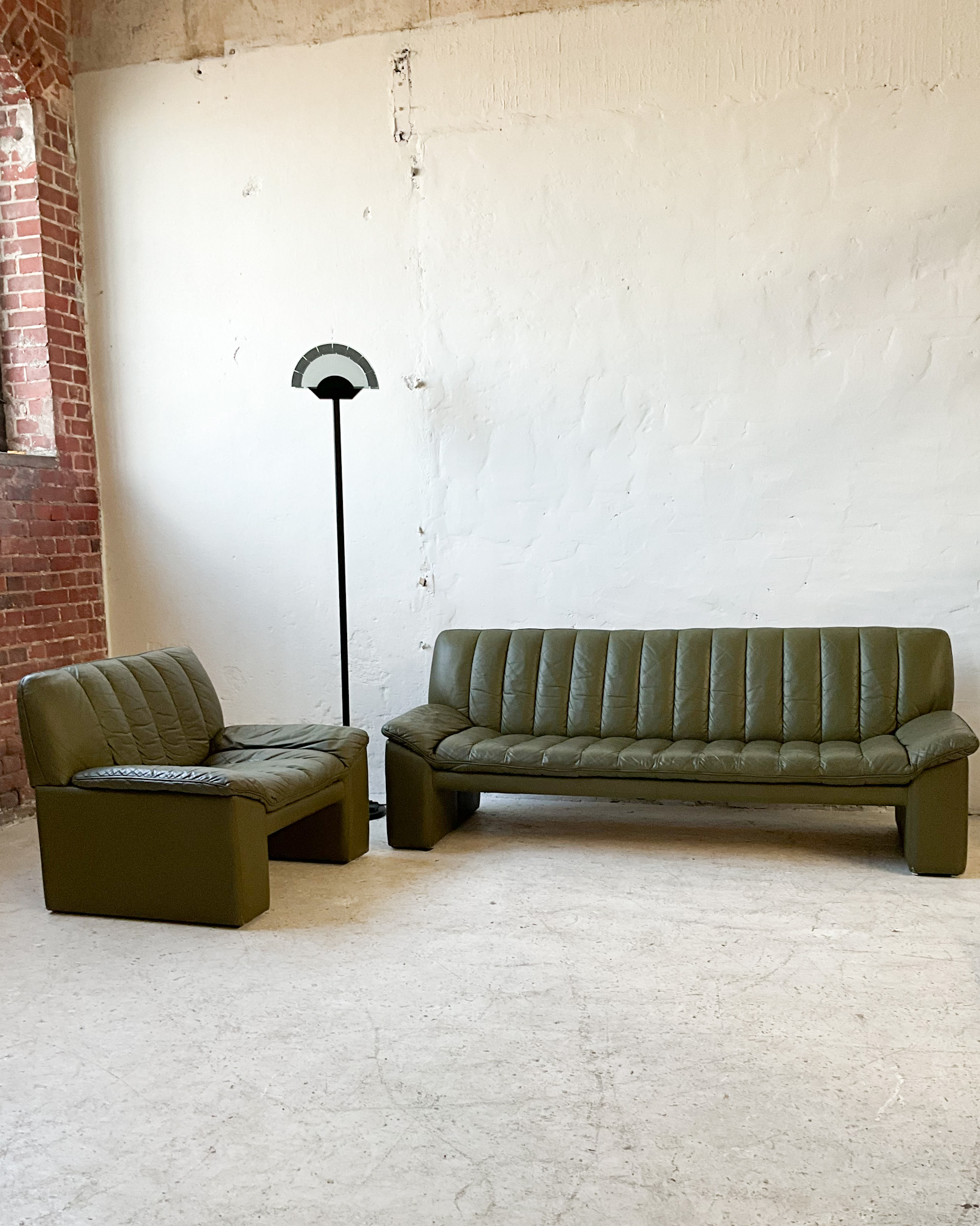 Modernistyczne krzesła skórzane z lat 80/90-tych. Krzesła są wygodne i dobrze wykonane z wysokiej jakości materiałów. Stan zachowania jest dobry ze śladami użytkowania właściwymi dla wieku tych mebli. Krzesła są sztaplowane.